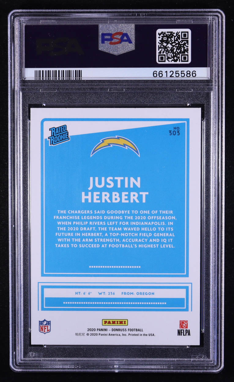 Justin Herbert 2020 Donruss Rated Rookies Canvas #303 RC (PSA 10)