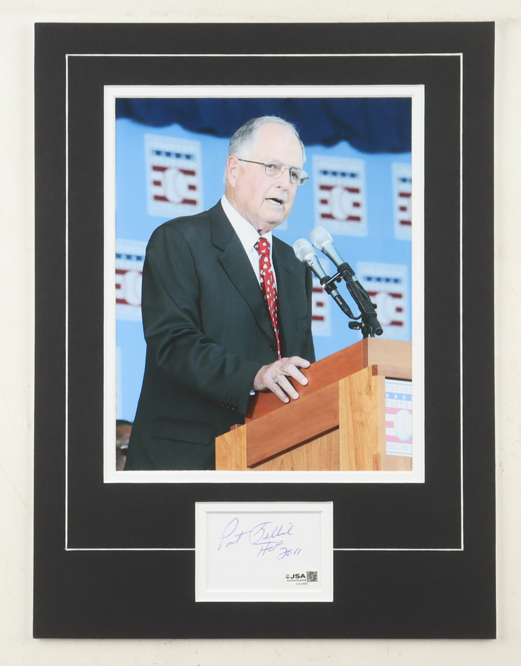 Pat Gillick Signed 12x16 Custom Matted Cut Display with Photo Inscribed "HOF 2011" (JSA)