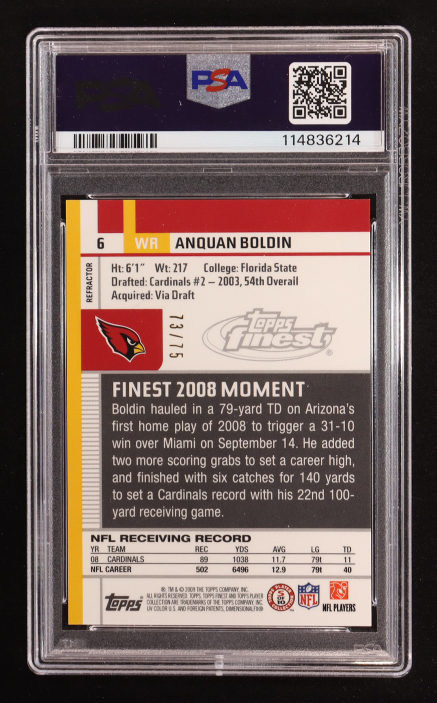 Anquan Boldin 2009 Finest Gold Refractors 75 #6 #73/75 (PSA 9)