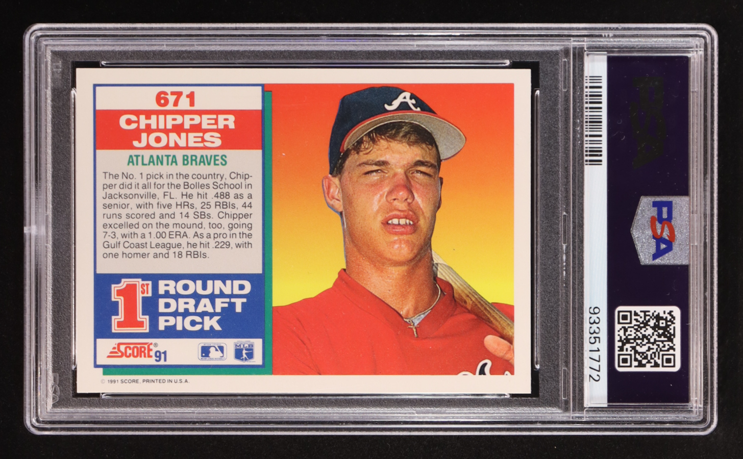 Chipper Jones 1991 Score #671 RC (PSA 9)
