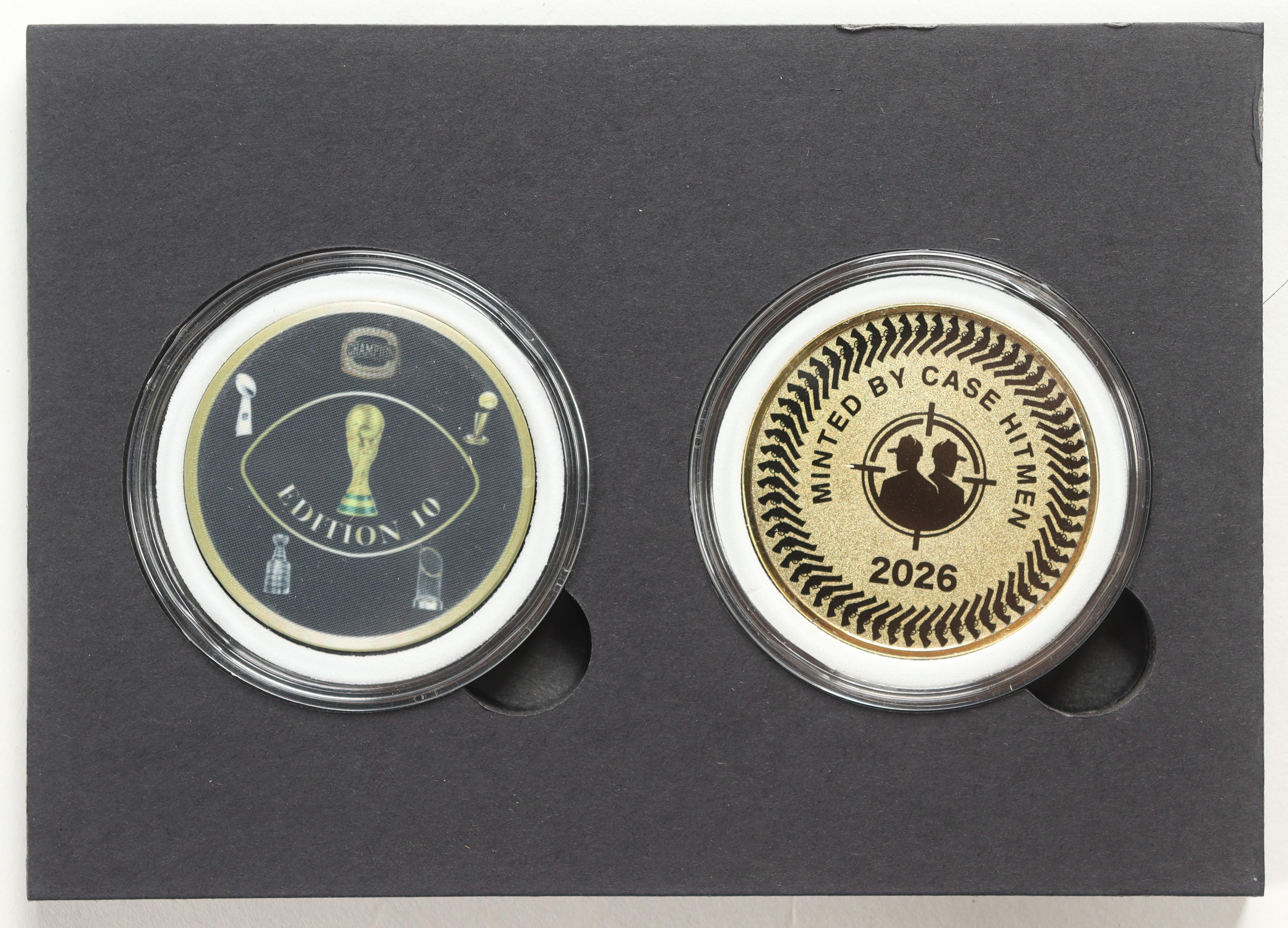 Please see photos for more details regarding the condition of the card (New England Patriots). Includes (2) custom coins and display box.