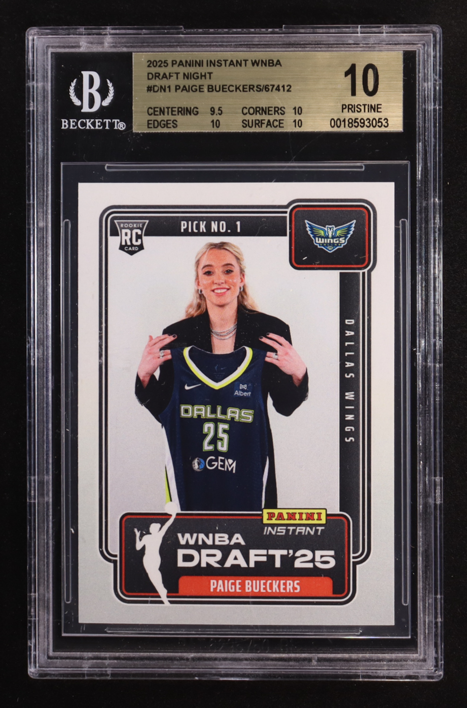 Paige Bueckers 2025 Panini Instant WNBA Draft Night #DN1 RC (BGS 10)