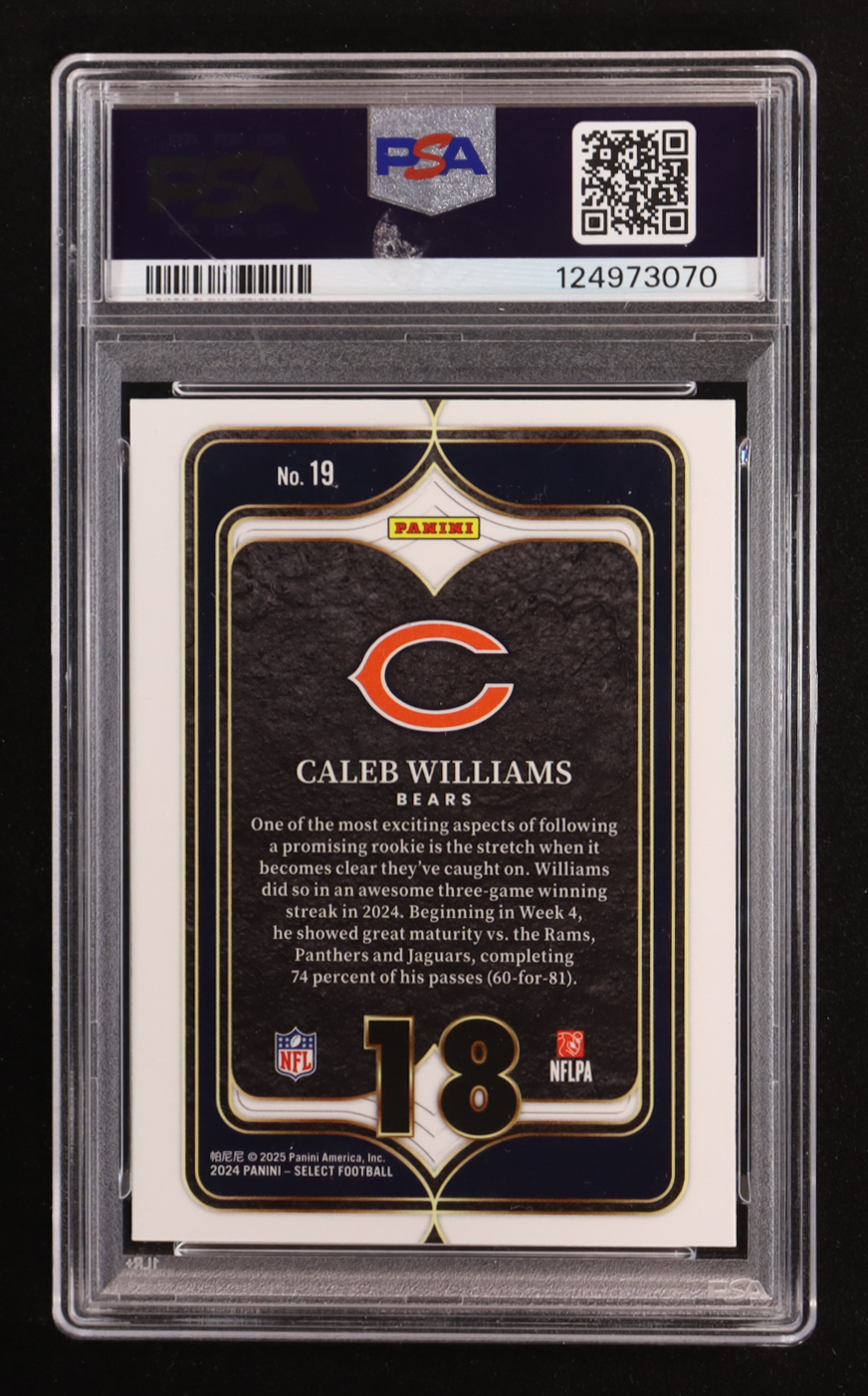 Caleb Williams 2024 Select Select Numbers #19 RC (PSA 10)