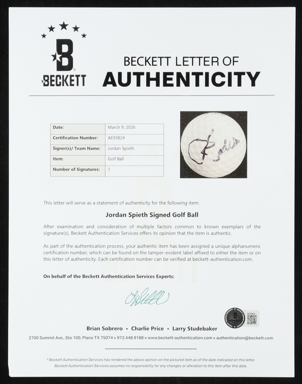 The autograph includes an official Beckett Authentication Services hologram and matching LOA for authenticity purposes.