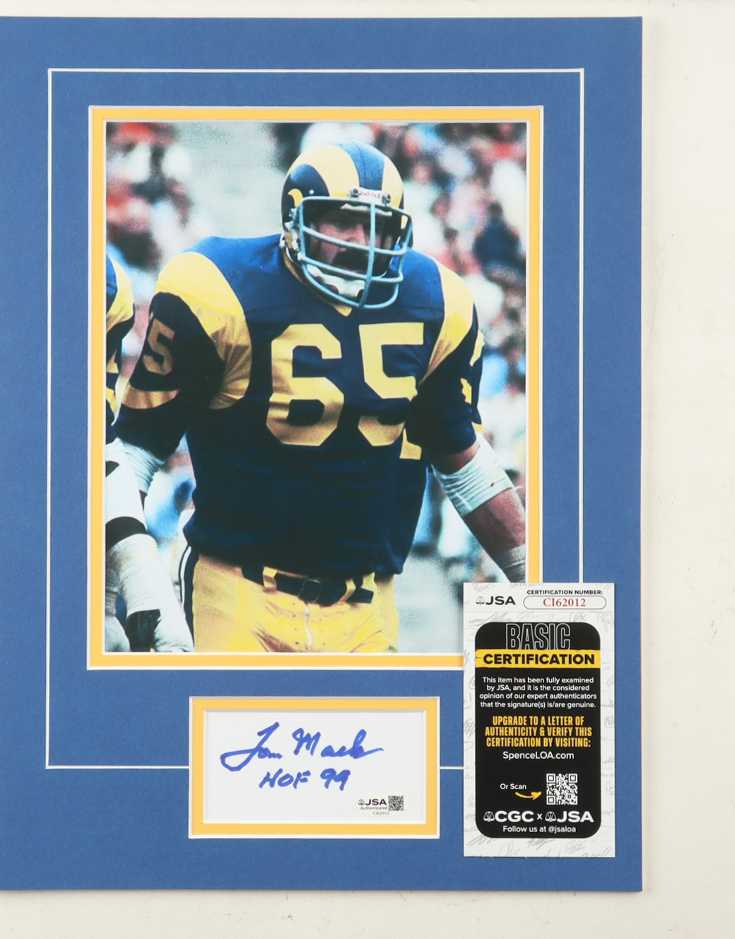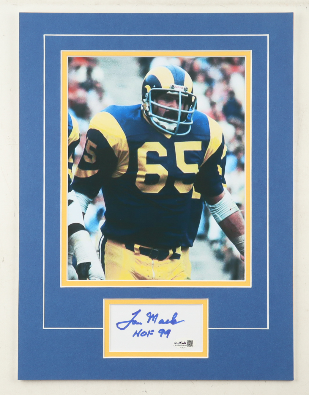 Tom Mack Signed 12x16 Custom Matted Cut Display with Photo Inscribed "HOF 99" (JSA)