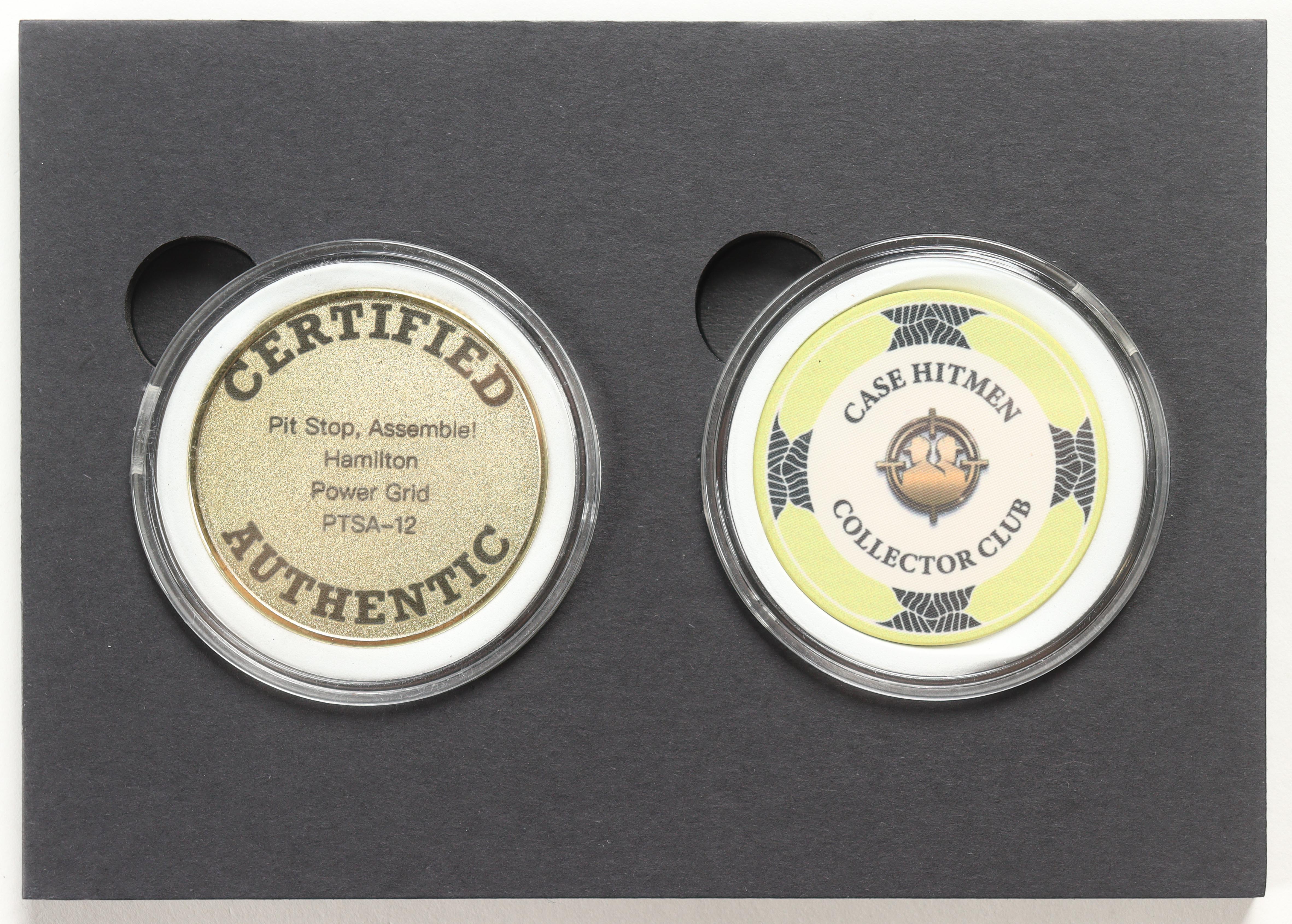Lewis Hamilton "Pit Stop, Assemble!" The Case Hitmen Custom Art Card PTSA-12 Power Grid #394 #1/1 with (2) Custom Coins & Display Box