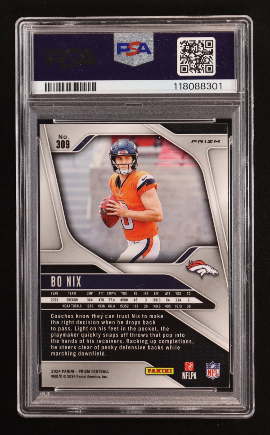 Bo Nix 2024 Panini Prizm Prizms Lazer #309 RC (PSA 9)