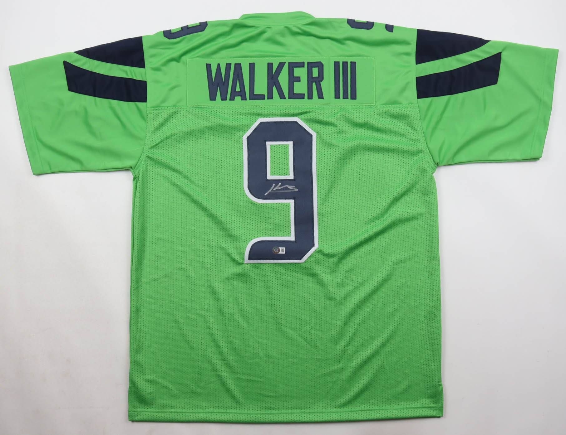 Custom jersey with everything sewn on, size XL. Hand-signed by Kenneth Walker III.