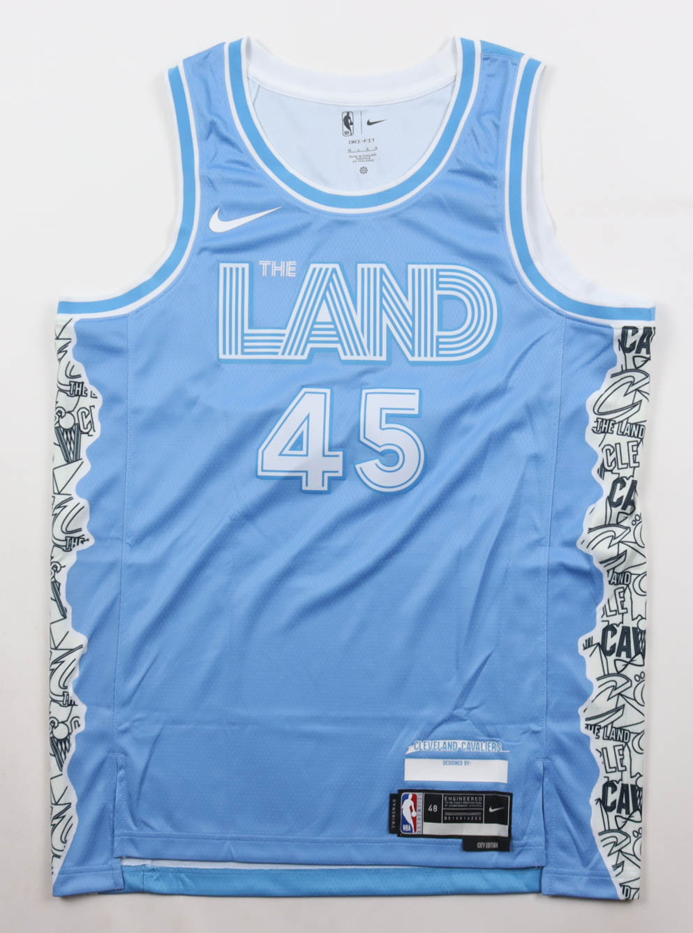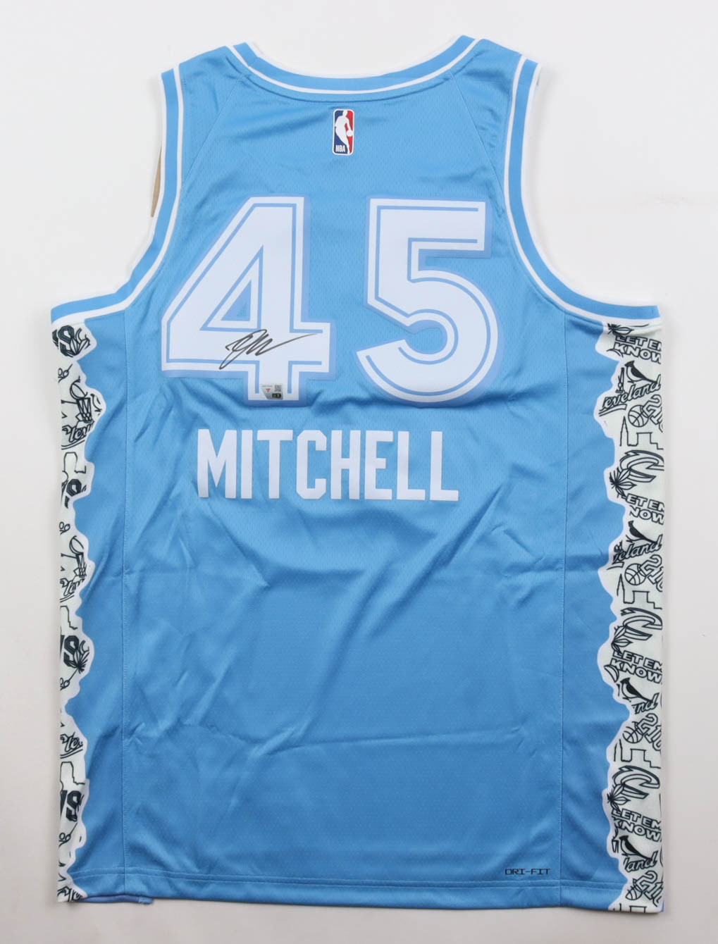 Nike jersey with everything pressed on, size 48. Hand-signed by Donovan Mitchell (Cleveland Cavaliers).