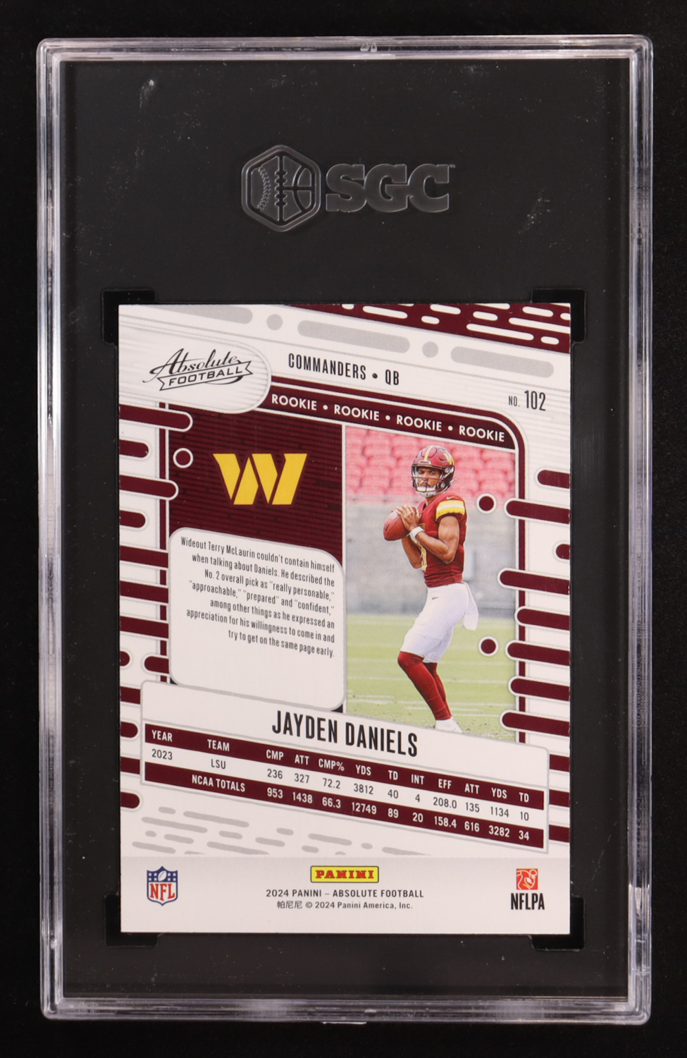 Jayden Daniels 2024 Absolute Red and Blue #102 RC (SGC 10)