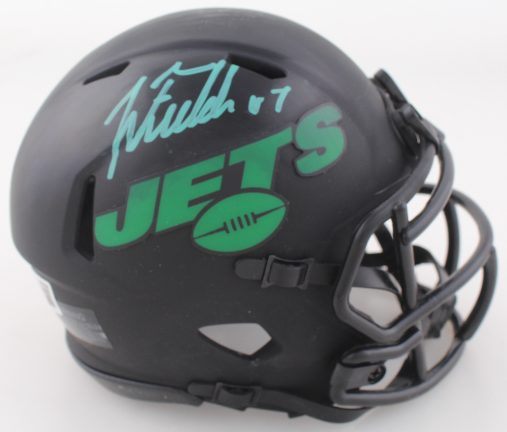 Riddell New York Jets Eclipse Alternate Speed mini helmet. Hand-signed by Justin Fields.