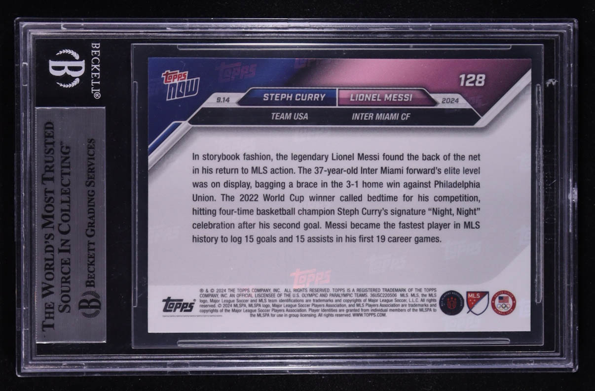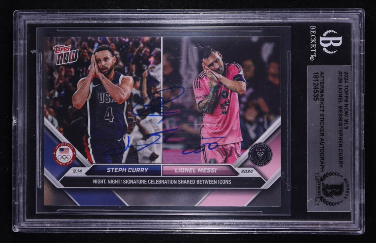 Steph Curry / Lionel Messi Signed 2024 Topps Now MLS #128 (BGS)