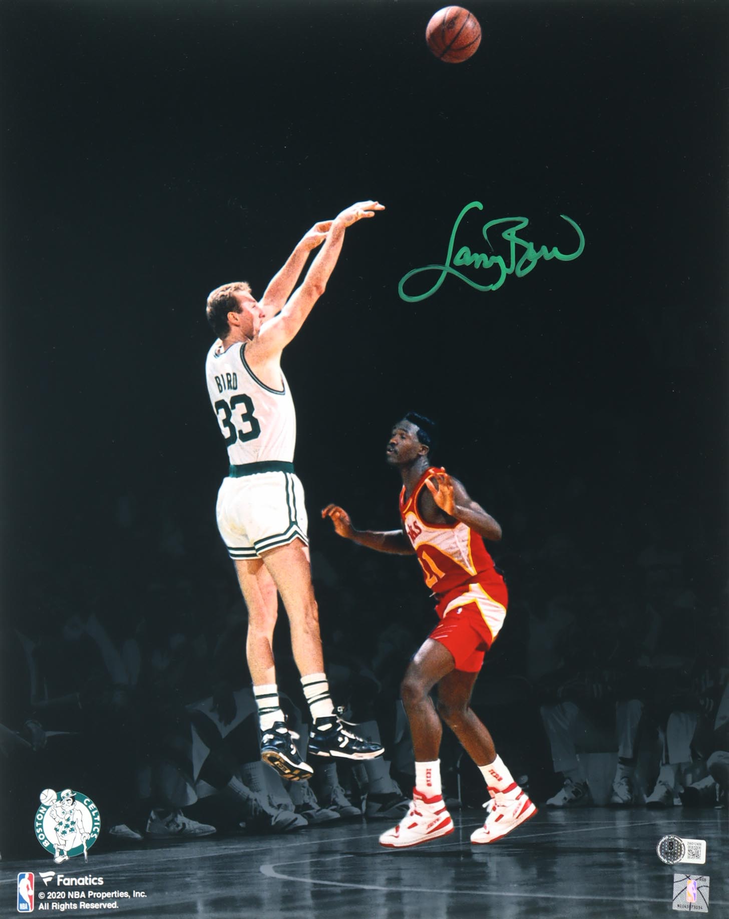 Photo measures 16" x 20" in size and has been hand-signed by Larry Bird (Boston Celtics, HOF).