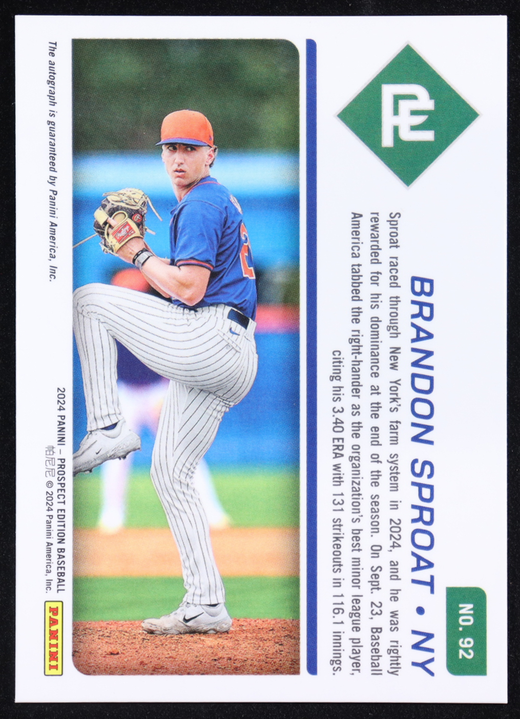 Brandon Sproat 2024 Panini Prospect Edition Holo Prospect Ticket Signatures #92 RC