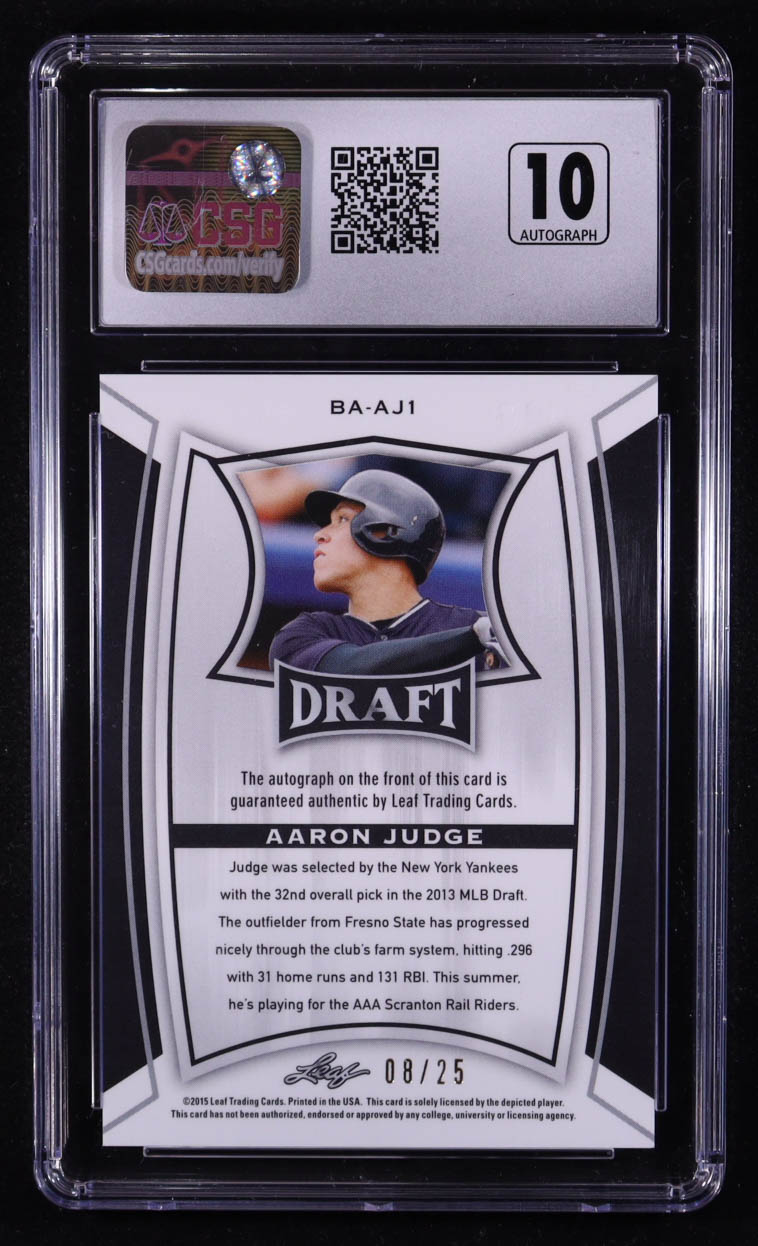 Aaron Judge 2015 Leaf Metal Draft Autographs Prismatic Purple #BAAJ1 #08/25 (CSG 9)