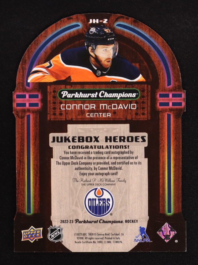 Connor McDavid 2022-23 Parkhurst Champions Jukebox Heroes Autographs #JH2 #17/25