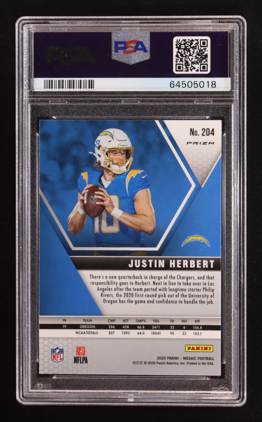 Justin Herbert 2020 Panini Mosaic Mosaic Camo Pink #204 RC (PSA 10)