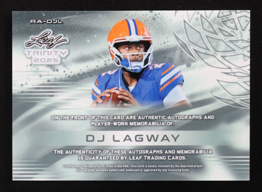 DJ Lagway 2025 Leaf Trinity Rookie Memorabilia Autographs Blue #RADJL #39/45 RC