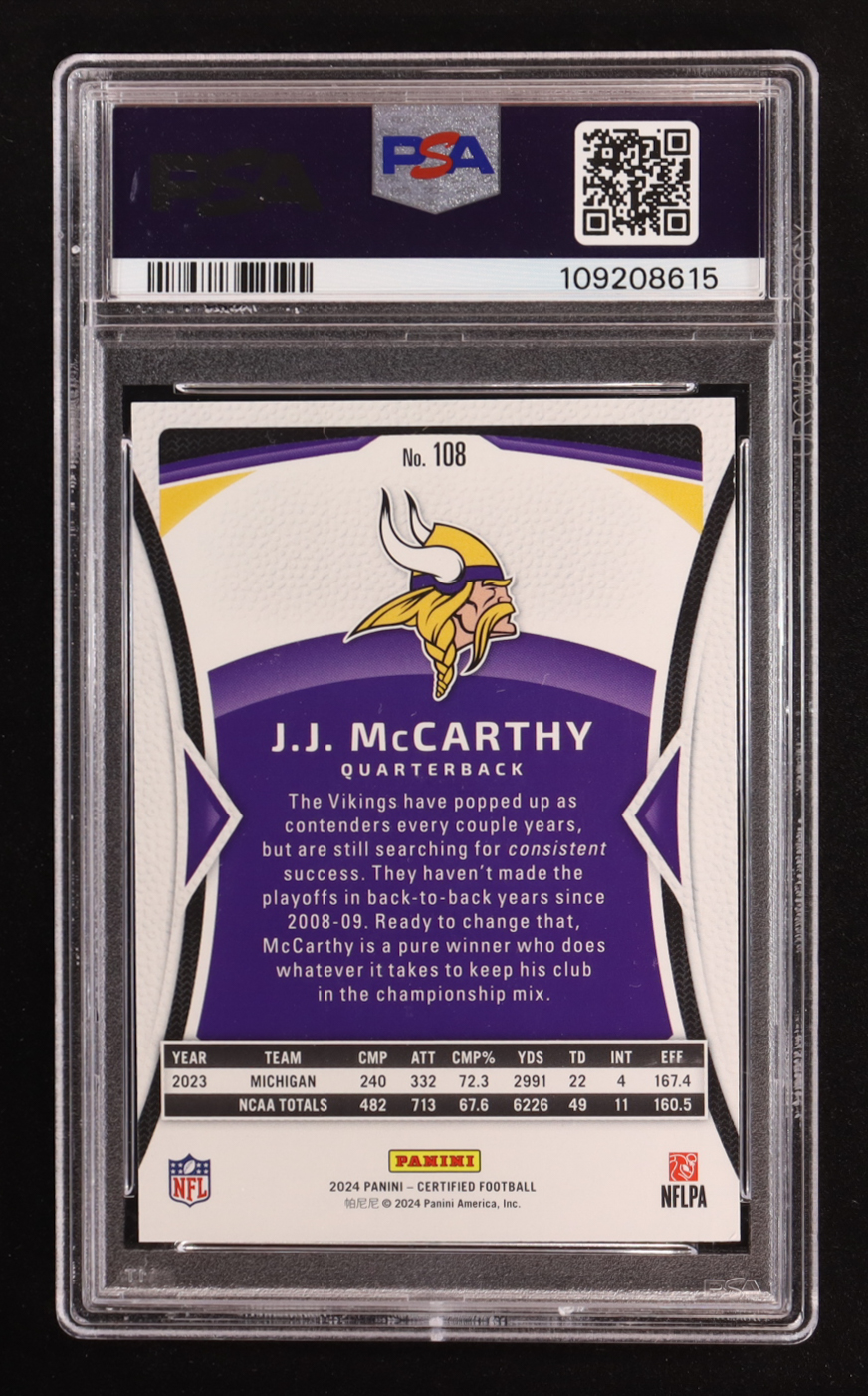 JJ McCarthy 2024 Certified #108 RC #242/400 (PSA 9)