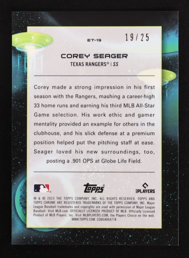 Corey Seager 2023 Topps Cosmic Chrome Extraterrestrial Talent Orange Galactic Refractors #ET19 #19/25