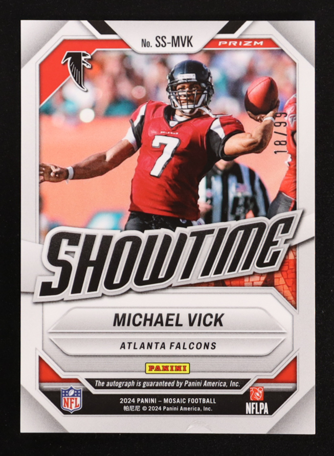 Michael Vick 2024 Panini Mosaic Showtime Signatures Blue #15 #18/99