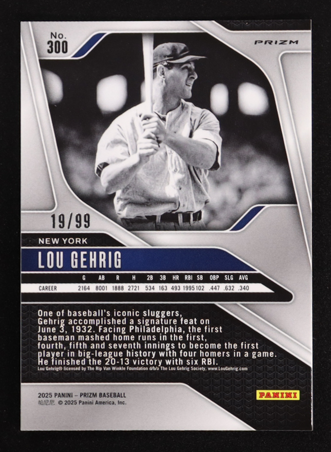Lou Gehrig 2025 Panini Prizm Prizms Red Power #300 #19/99