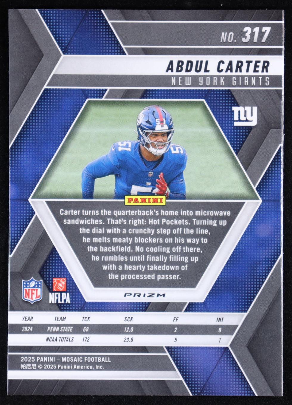 Abdul Carter 2025 Panini Mosaic No Huddle Disco Prizm #317 RC