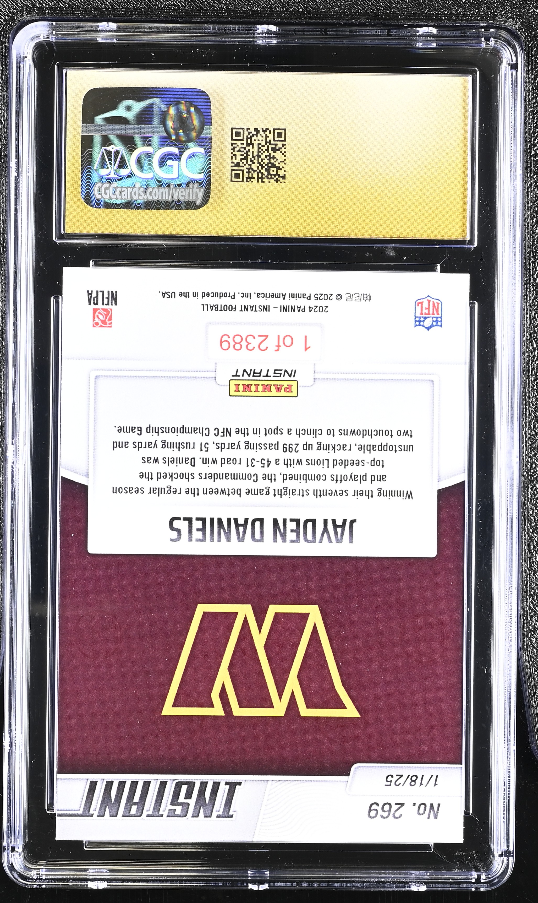 Jayden Daniels 2024 Panini Instant #269 (CGC PRISTINE 10 | Black Label)