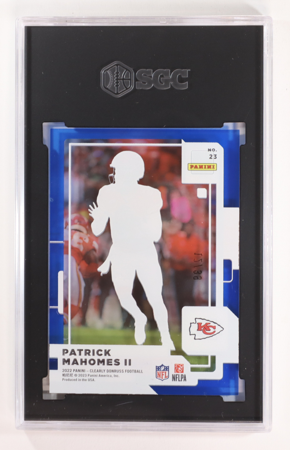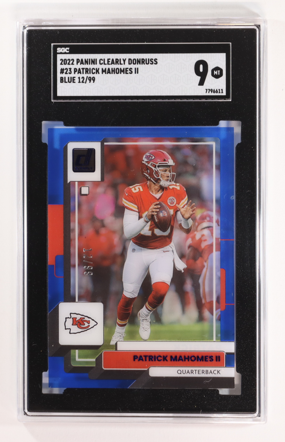 Patrick Mahomes II 2022 Clearly Donruss Blue #23 #12/99 (SGC 9)