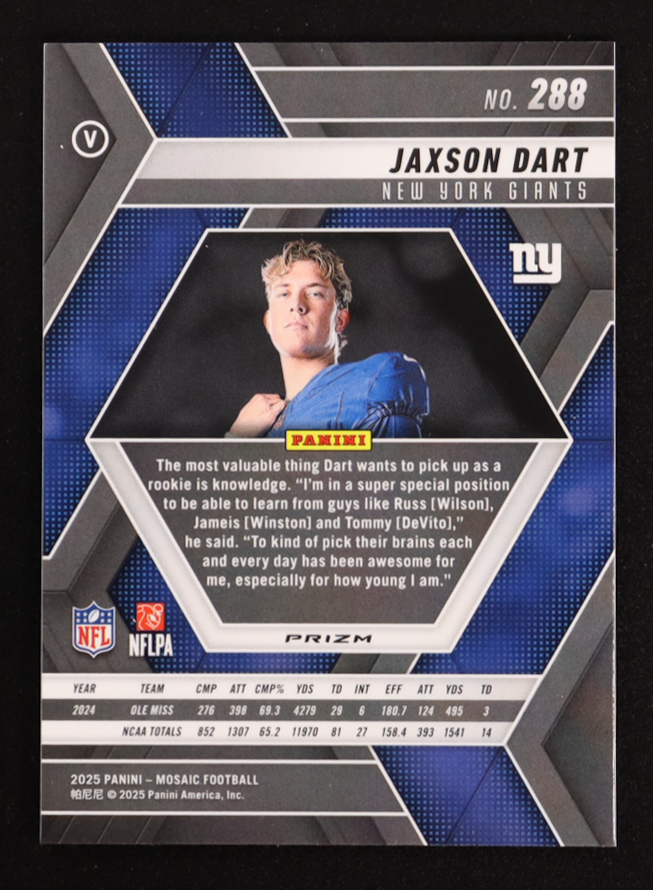 Jaxson Dart 2025 Panini Mosaic Blue Scope #288 VAR RC
