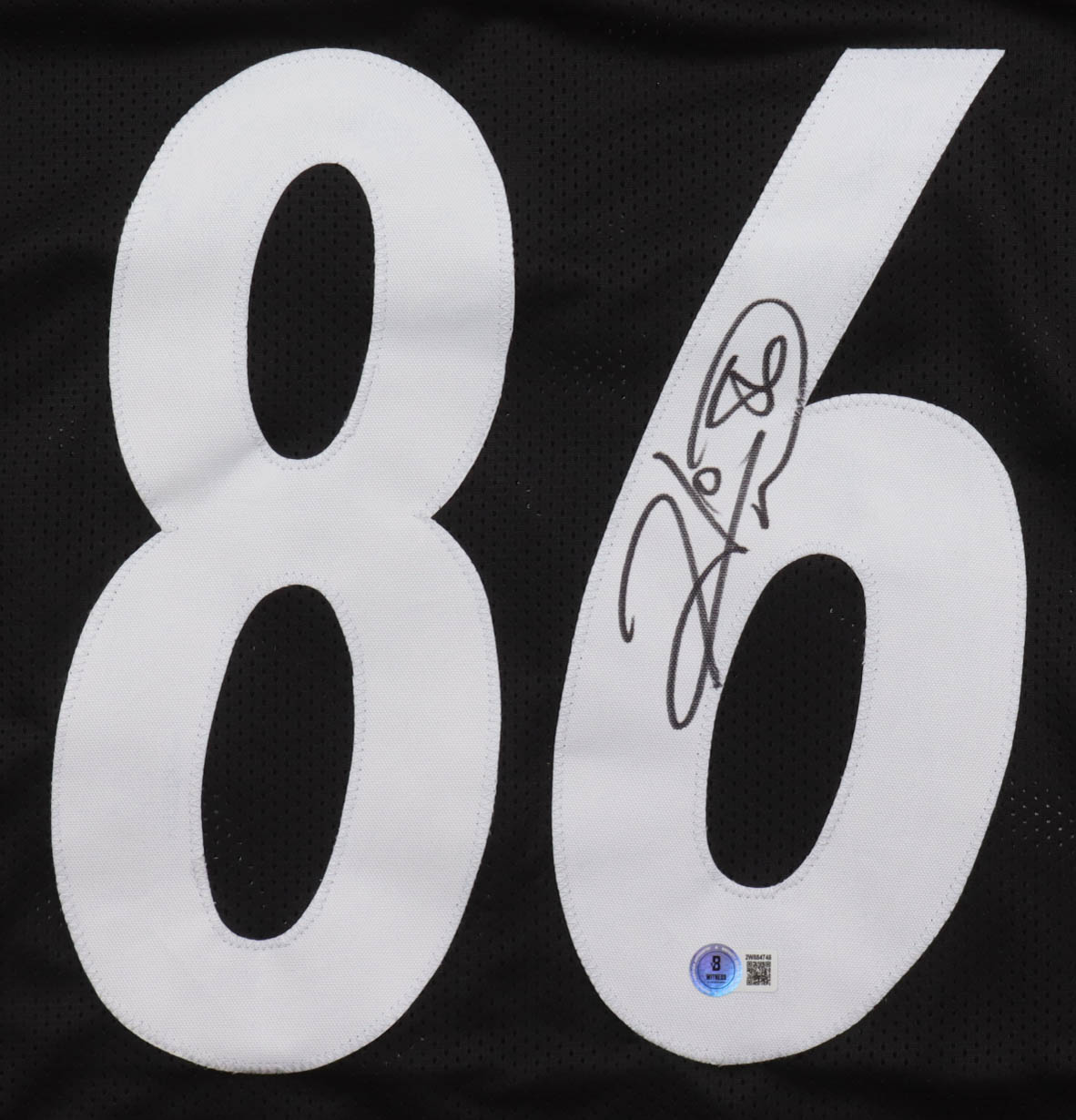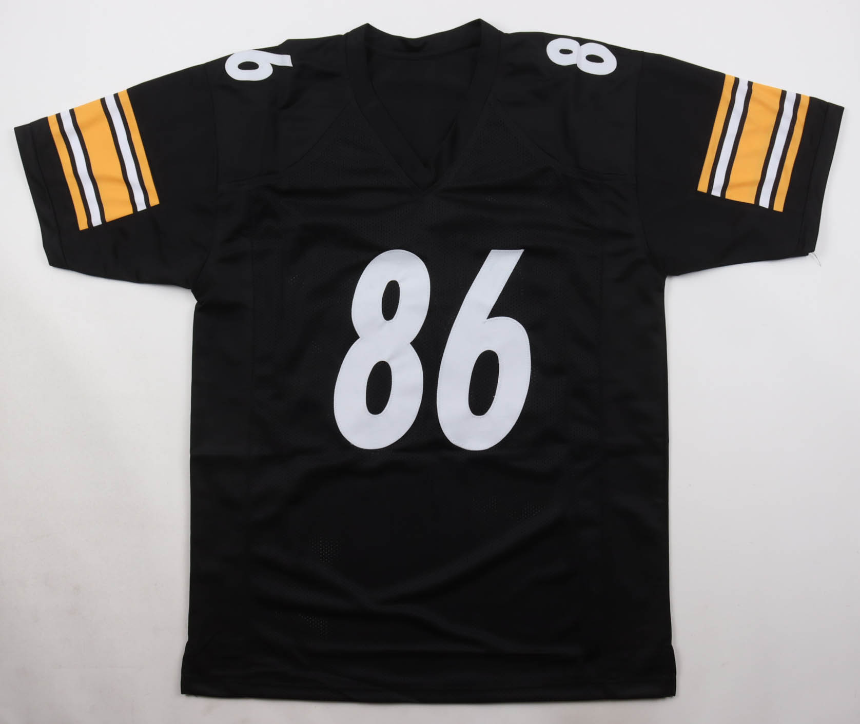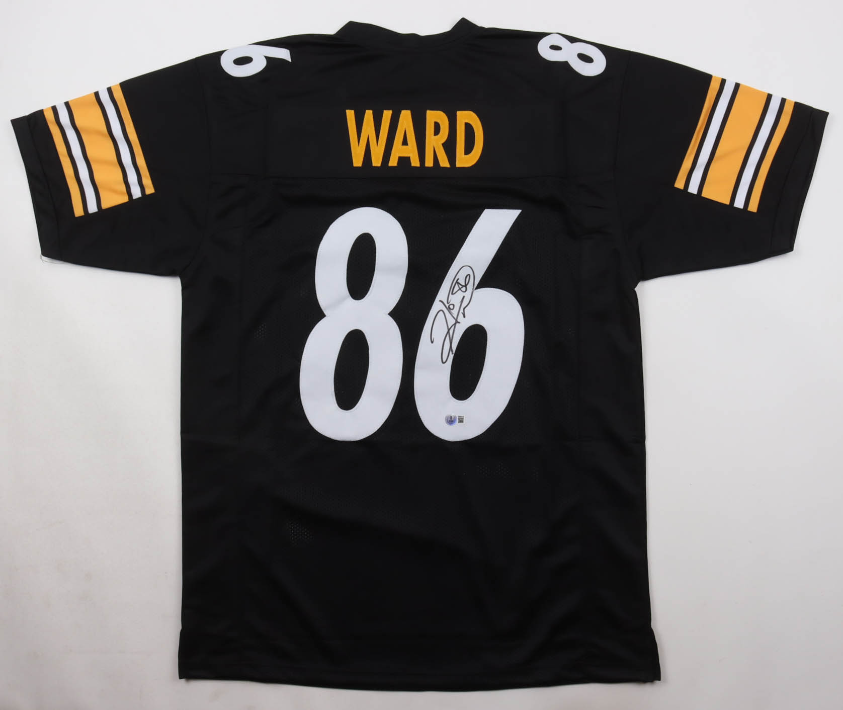 Custom jersey with everything sewn on, size XL. Hand-signed by Hines Ward. Please note, glue is visible through the reverse number.