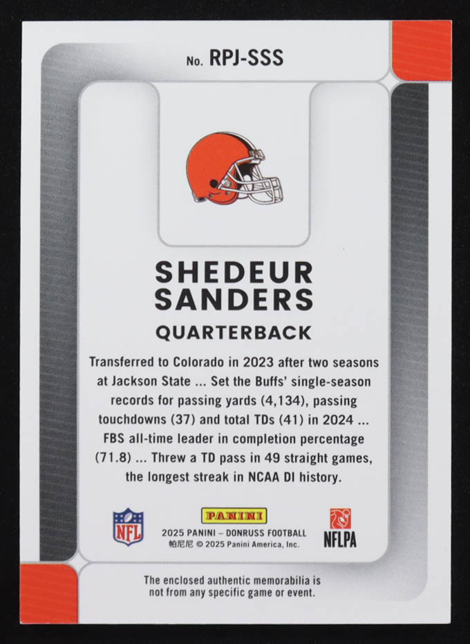 Shedeur Sanders 2025 Donruss Rookie Phenom Jerseys #5 RC