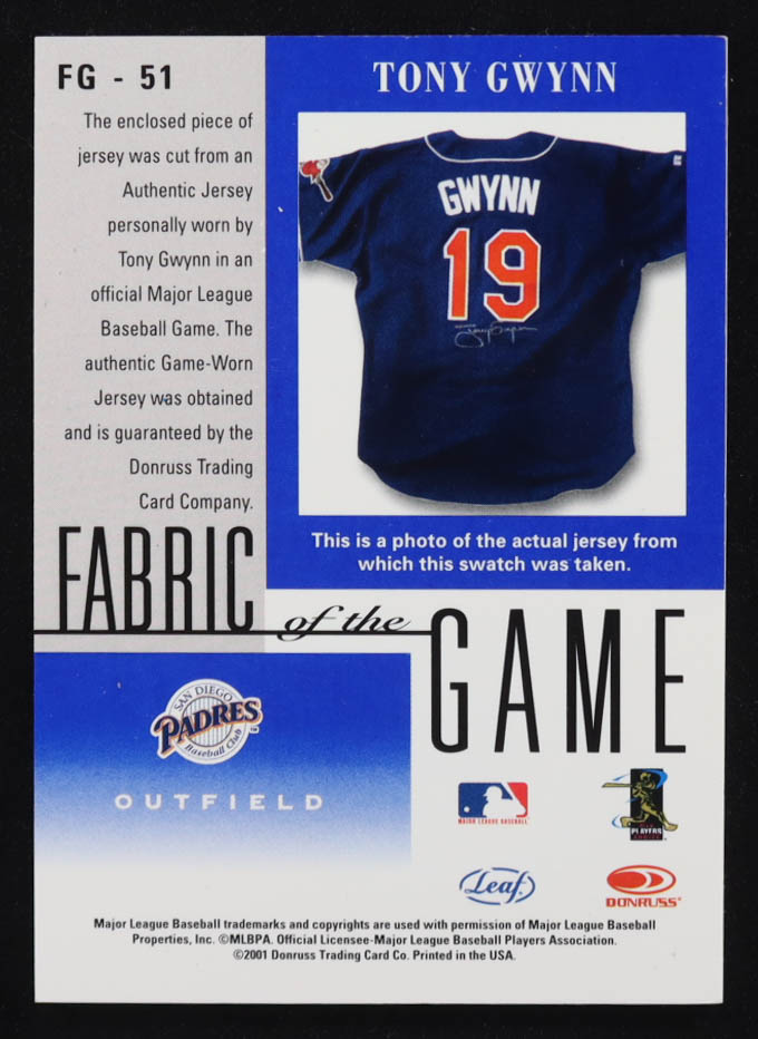Tony Gwynn 2001 Leaf Certified Materials Fabric of the Game #FG51