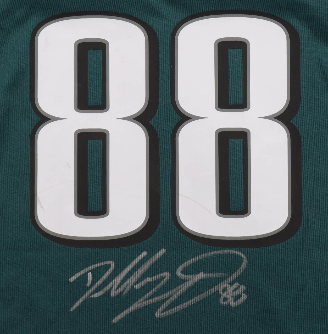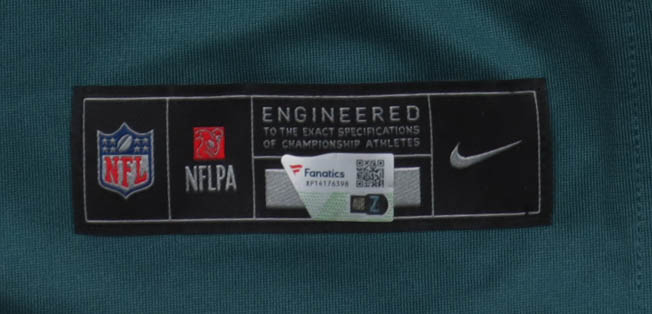 Nike authentic jersey with everything pressed on, size XL. Hand-signed by Dallas Goedert (Philadelphia Eagles). Please note, there is staining on the reverse number and left sleeve. See photos regarding the condition of the item.