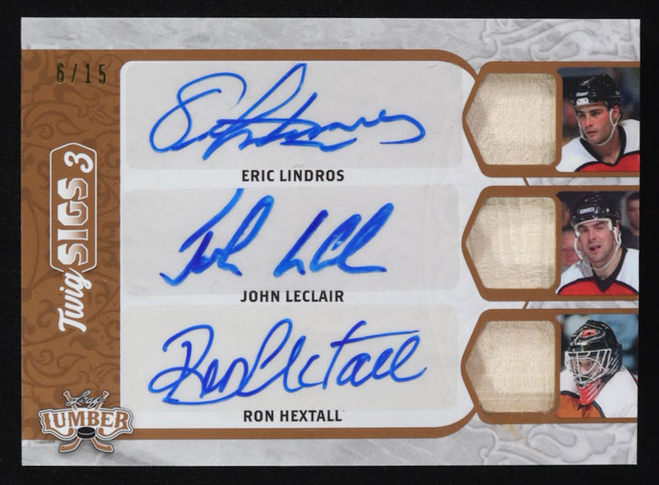 Eric Lindros / John LeClair / Ron Hextall 2021-22 Leaf Lumber Twig Sigs 3 Bronze #TS309 #6/15