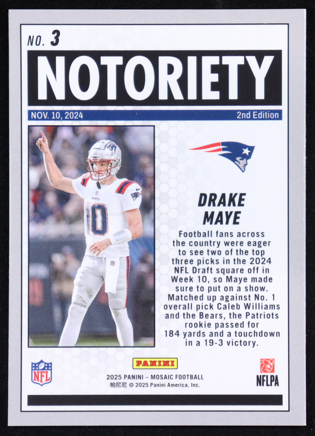 Drake Maye 2025 Panini Mosaic Notoriety #3
