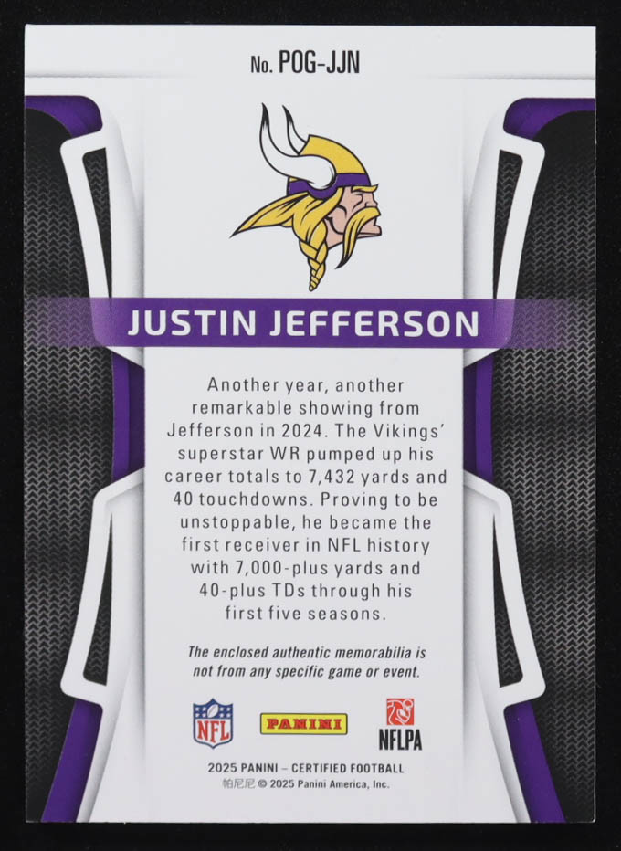 Justin Jefferson 2025 Certified Piece of the Game #19 #044/299
