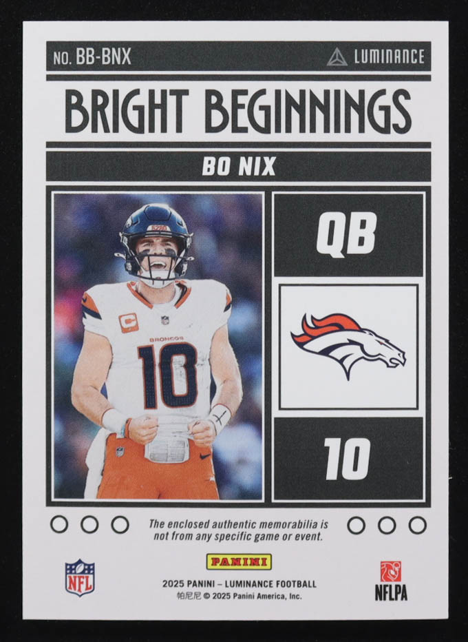 Bo Nix 2025 Panini Luminance Bright Beginnings Jerseys Gold #15 #47/50
