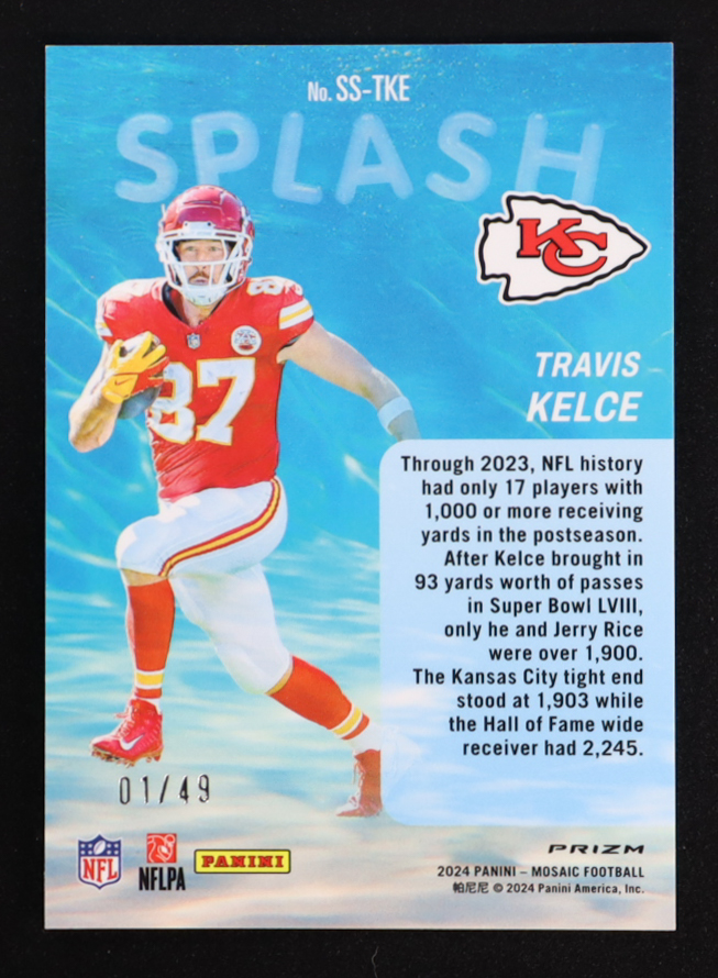 Travis Kelce 2024 Panini Mosaic Splash Mosaic Purple #8 #01/49