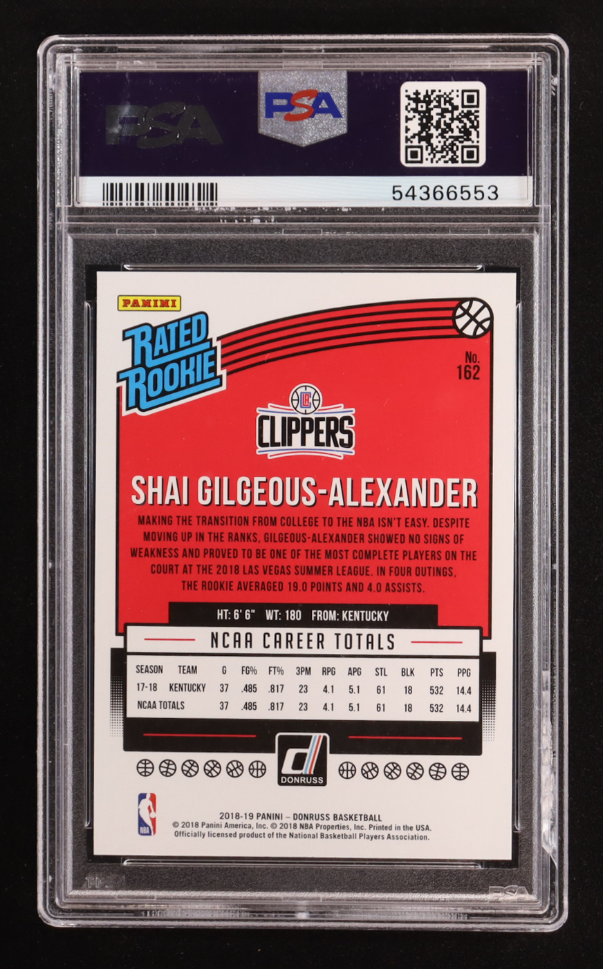 Shai Gilgeous-Alexander 2018-19 Donruss #162 RR RC (PSA 9)
