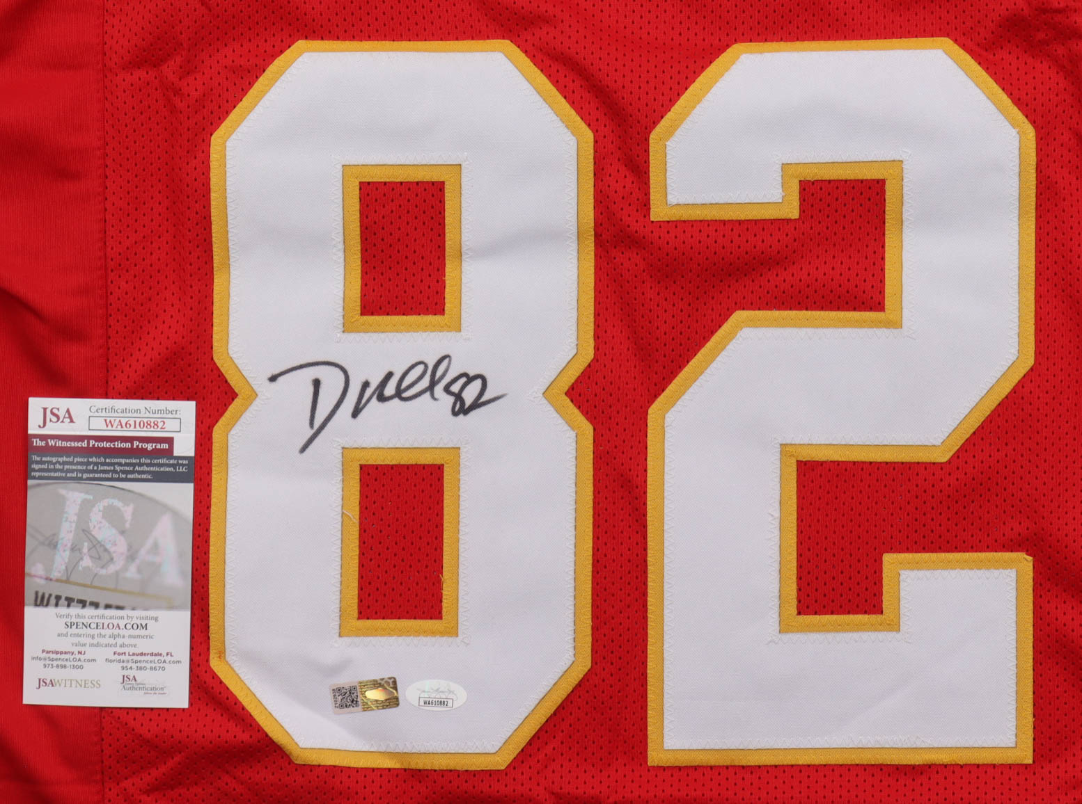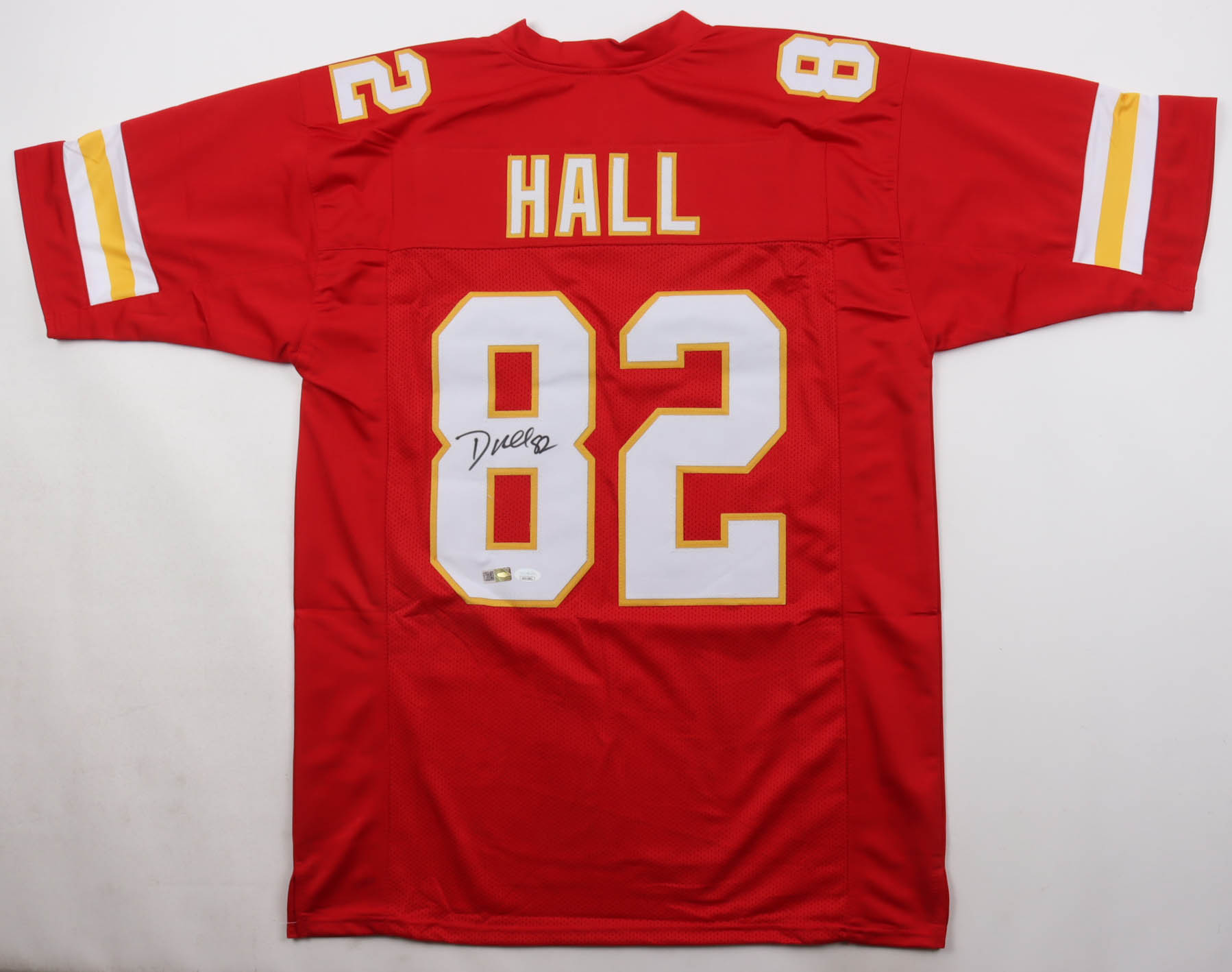 Custom jersey with everything sewn on, size XL. Hand-signed by Dante Hall.