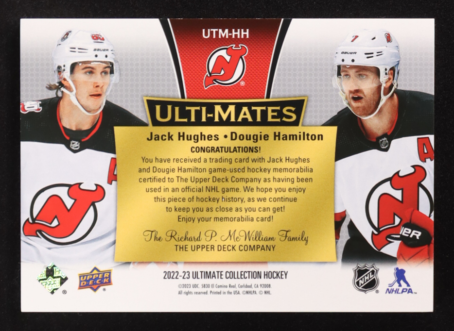 Jack Hughes / Dougie Hamilton 2022-23 Ultimate Collection Ulti-Mates Jerseys #UTMHH