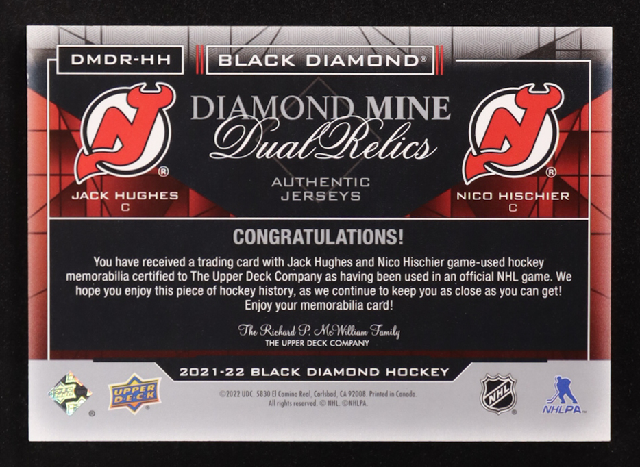 Nico Hischier / Jack Hughes 2021-22 Black Diamond Diamond Mine Dual Relics #DMDRHH