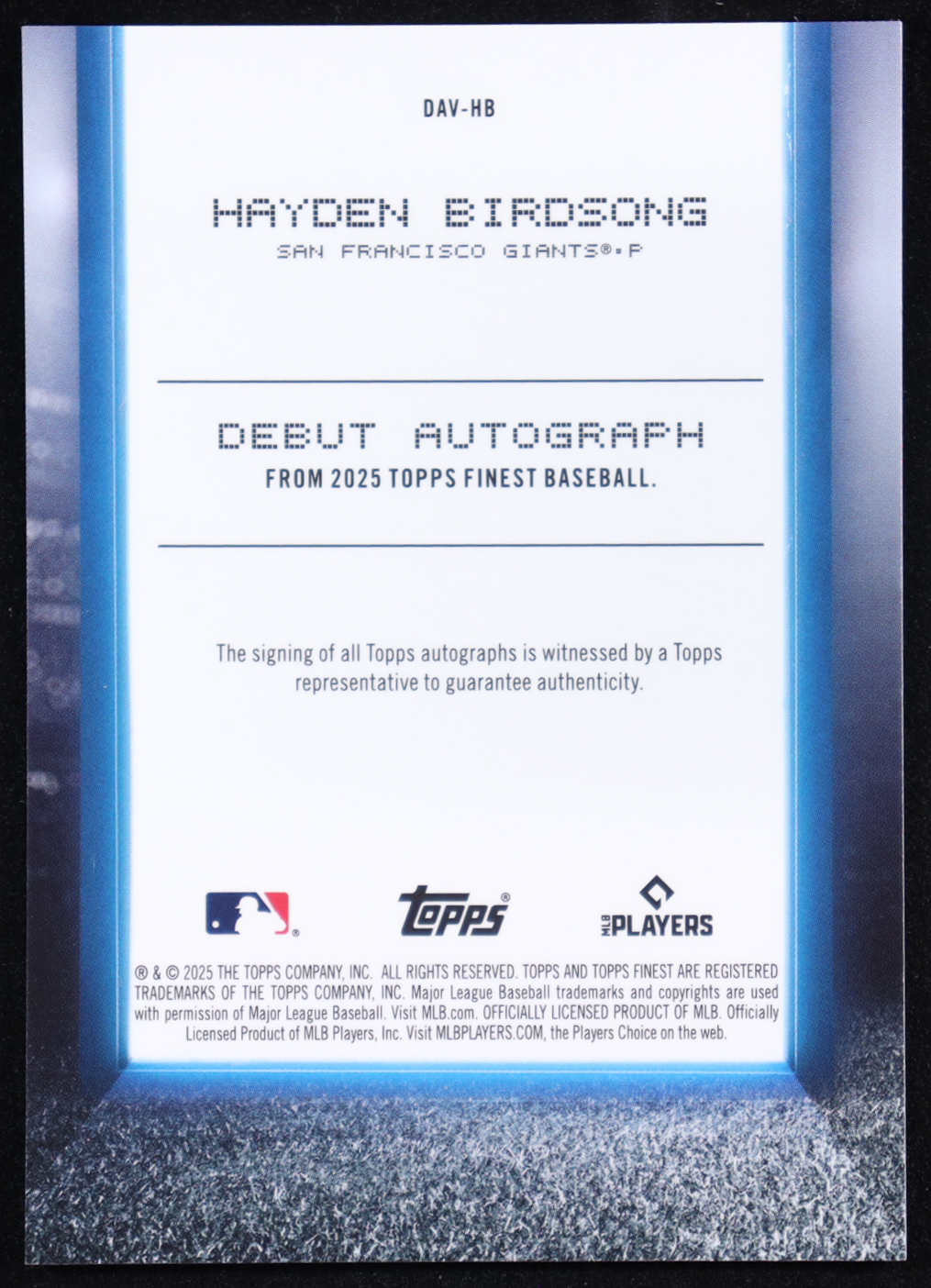 Hayden Birdsong 2025 Finest Debut Autographs #DAVHB RC