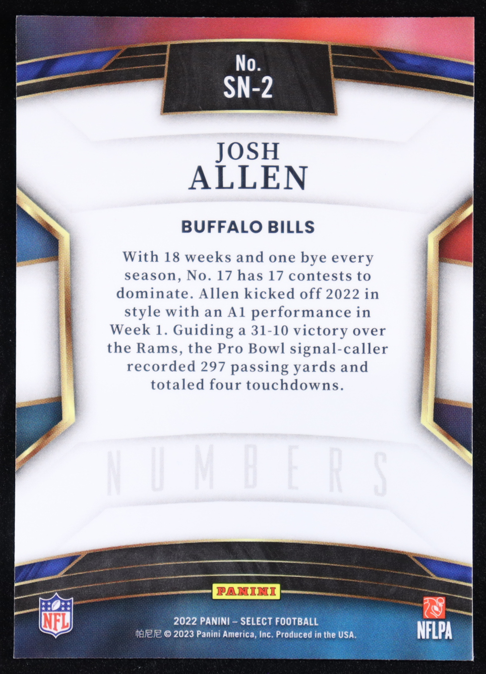Josh Allen 2022 Panini Select Numbers #SN-2