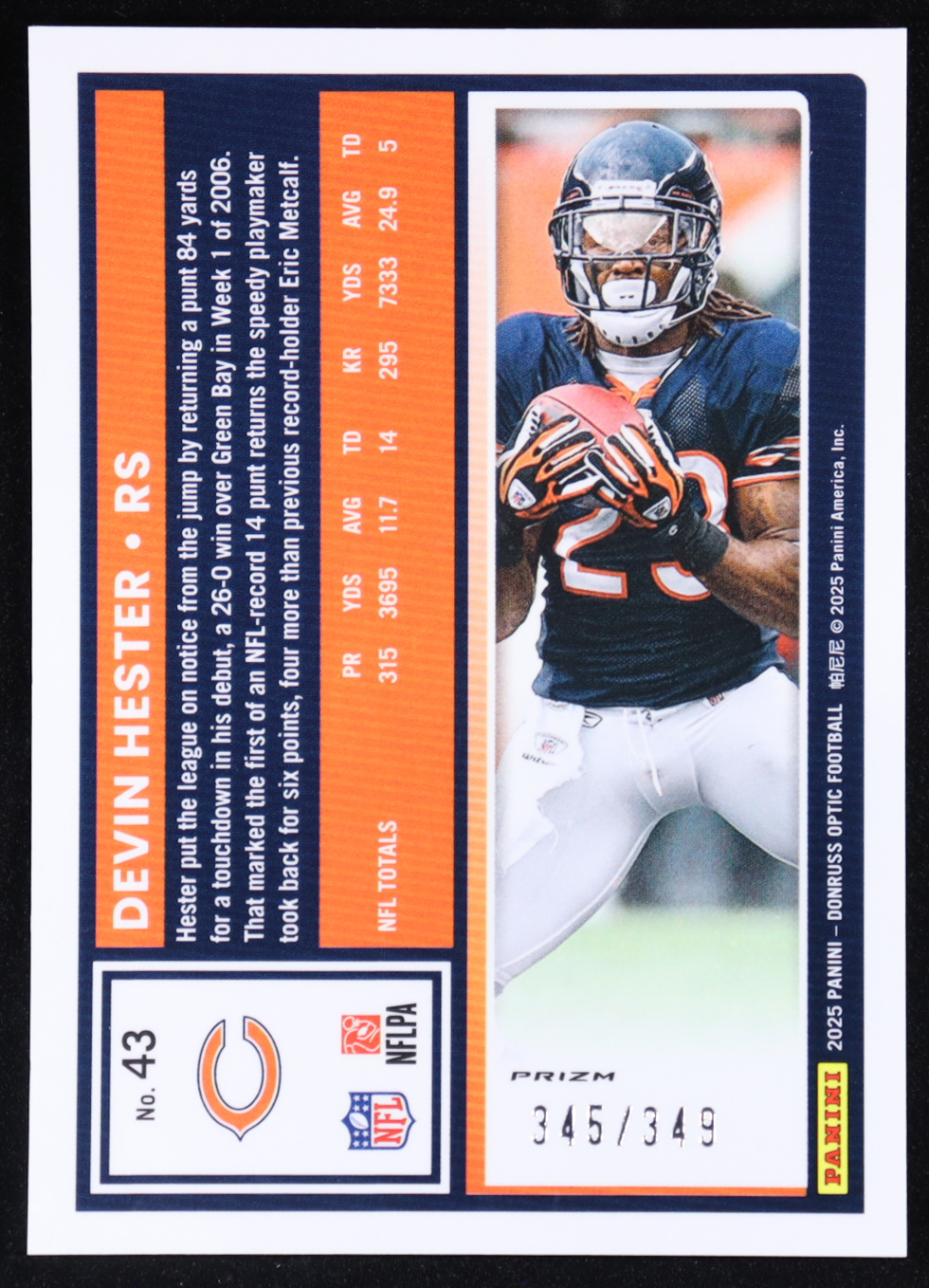 Devin Hester 2025 Panini Donruss Optic Aqua #43 #345/349