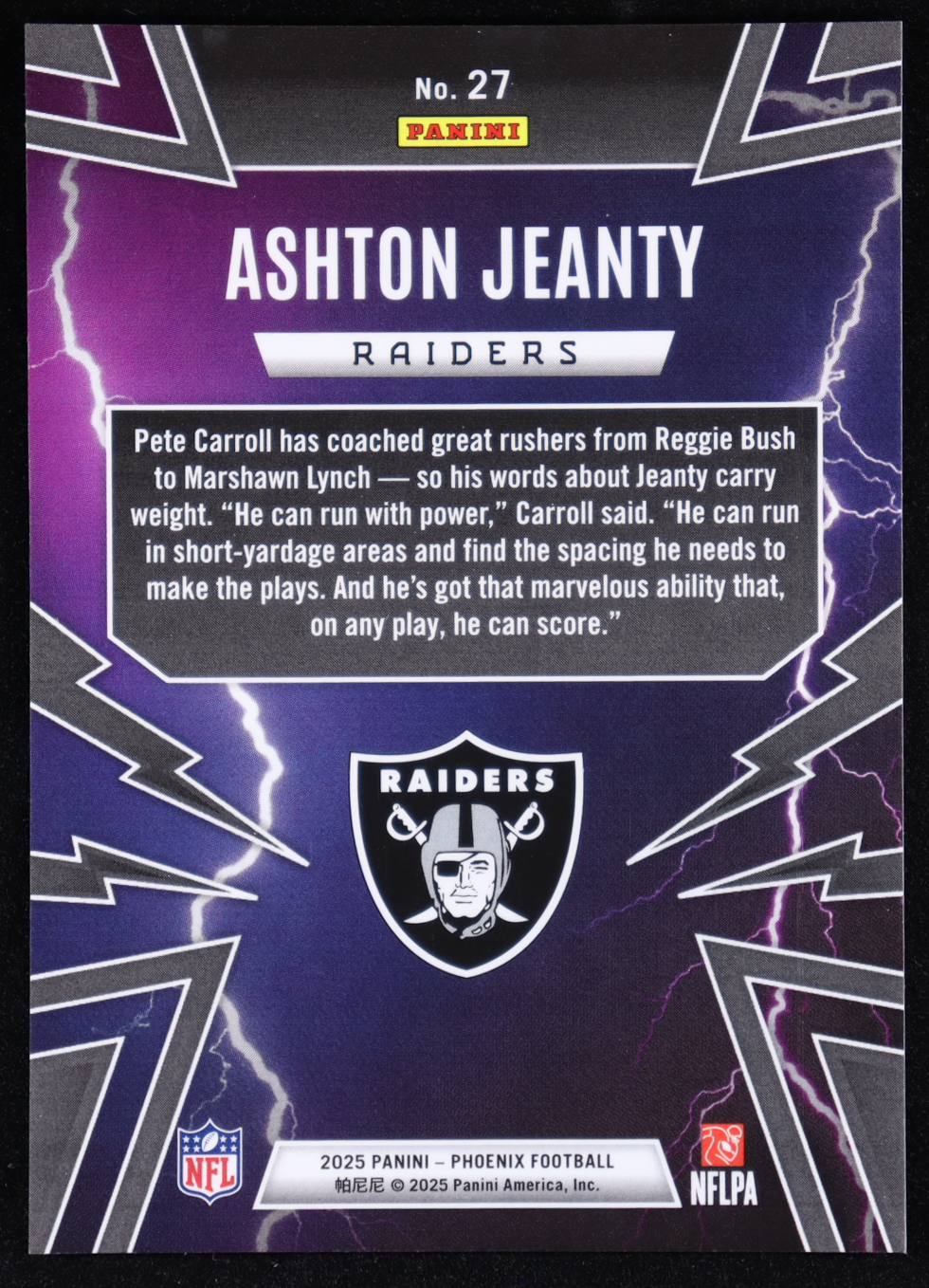 Ashton Jeanty 2025 Panini Phoenix Thunderbirds #27 RC