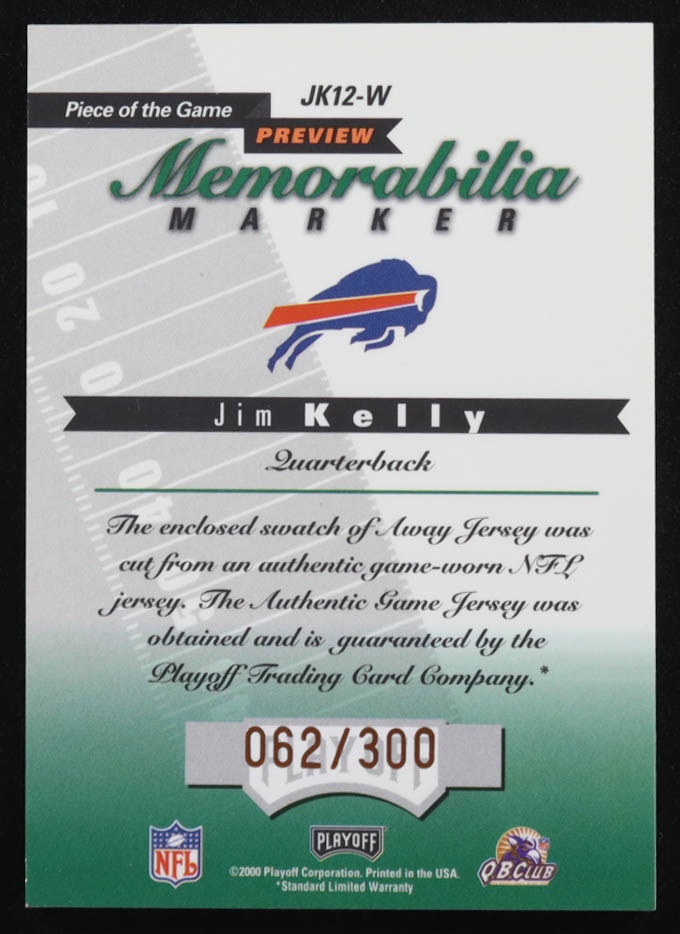 Jim Kelly 2000 Leaf Limited Piece of the Game Previews Third Down #JK12W #062/300
