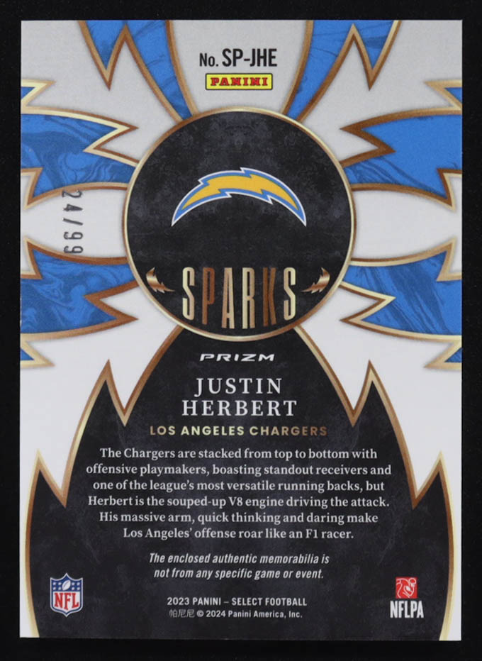 Justin Herbert 2023 Select Sparks Materials Prizm #32 #24/99