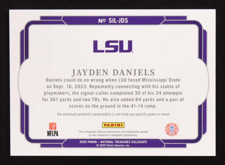 Jayden Daniels 2025 Panini National Treasures Collegiate Silhouettes Silver #18 #15/39
